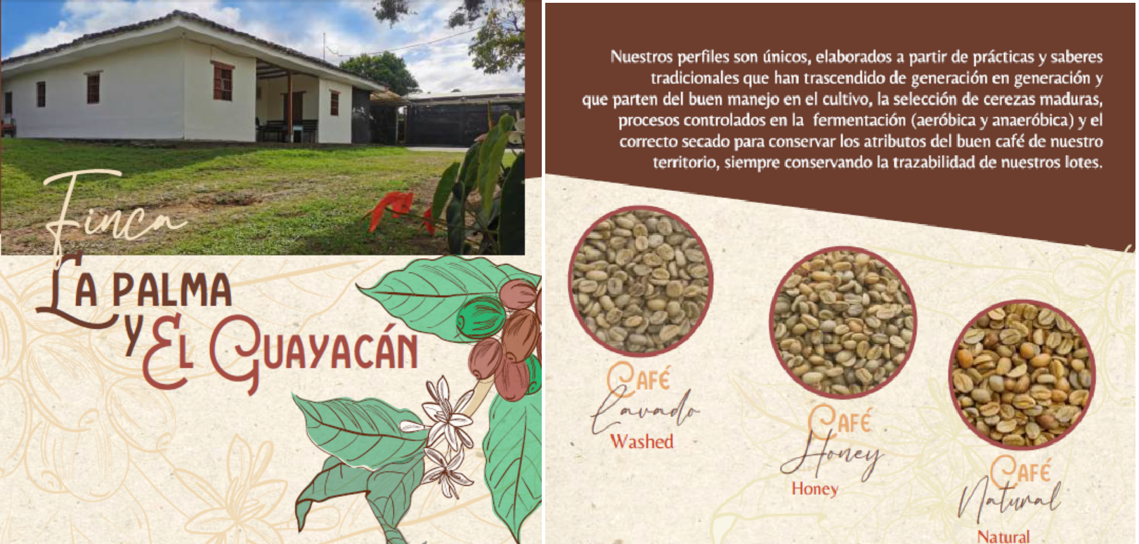 La finca La Palma y El Guayacán, ubicada entre los límites interandinos de los valles del Patía y Pubenza a 1850 msnm en la zona centro del departamento del Cauca – Colombia, se cultivan y procesan cafés de las variedades, Caturra, Castillo, Colombia, Bourbon rosado, Geisha, entre otros varietales.